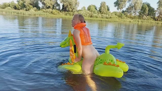 Alla hotly fucks a rare inflatable dragon on the lake and wears an inflatable vest!!!