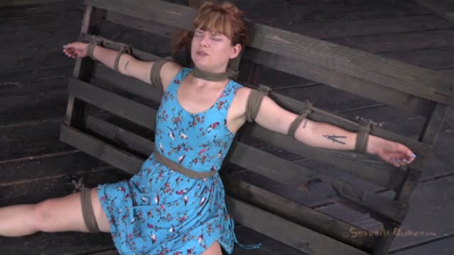 Pretty redhead Claire Robbins tied down, vibrated and throat boarded out of her mind!